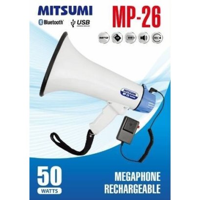 โทรโข่ง ยี่ห้อ Mitsumi รุ่น MP-7 เป็นโทรโข่ง ขนาดใหญ่ กำลังขยาย 80 วัตต์ ดังไกล กว่า 400 เมตร เป็น โทรโข่งอัดเสียงได้ ในตัวระยะเวลาบันทึก 10 วินาที