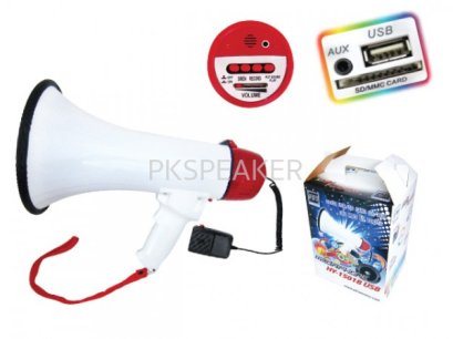 โทรโข่ง PK รุ่น HY-3007 USB เป็น โทรโข่งใหญ่ เหมาะสำหรับใช้กระจายเสียงในที่กว้าง กำลังเสียง 35 วัตต์ พร้อมช่องต่อ USB สำหรับ MP3