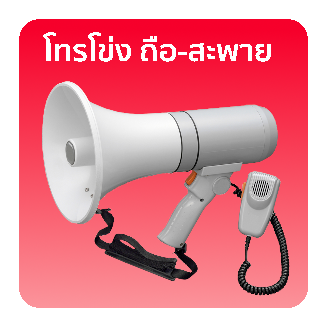 โทรโข่ง สะพาย + ถือ พร้อมสายสะพายสำหรับคล้องไหล่ และ ด้ามจับสำหรับใช้ถือพูด